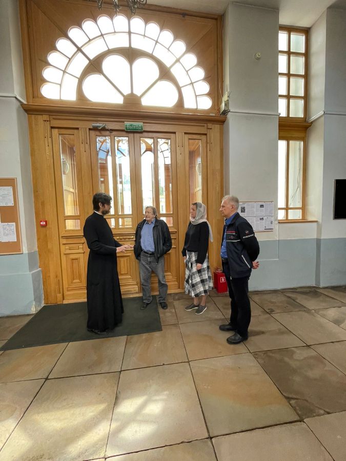 На примере храма святителя Мартина выявили и обсудили основные проблемы, с которыми сталкиваются пожилые и другие маломобильные прихожане при посещении храмов – объектов исторического, культурного и архитектурного наследия: высокие лестницы при входе, тяжелые и узкие двери, отсутствие поручней на лестницах, пороги на входах в храм и др.
