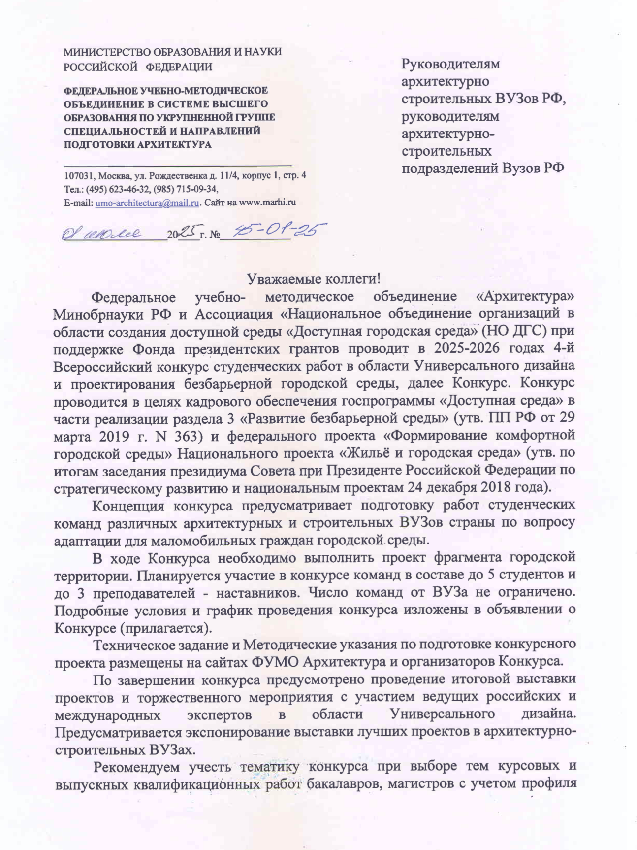 Письмо ФУМО Руководителям аврхитектурно-строительных ВУЗов РФ