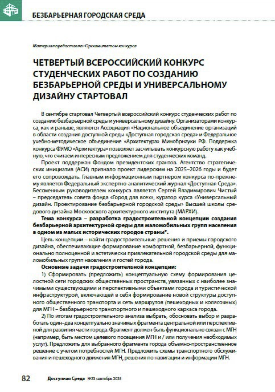 4-й Всероссийский конкурс студенческих работ в области Универсального дизайна и создания безбарьерной городской средыдля маломобильных групп населения 2025/26 года